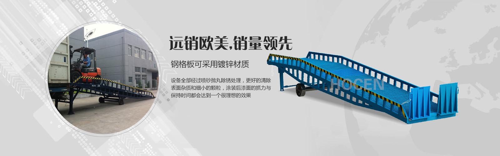 公司長期致力于鋁合金系列升降平臺、錳鋼系列液壓升降平臺和各種登車橋的研發(fā)生產(chǎn)。經(jīng)過不懈的研究探索,積累了豐富的設(shè)計、制造經(jīng)驗,其中我們也不斷學(xué)習(xí)國外先進(jìn)技術(shù)和設(shè)計方案,讓產(chǎn)品在工藝上和外觀上更精益求精。公司擁有從原材料處理、加工、噴涂的成套制造和檢測設(shè)備,嚴(yán)格的生產(chǎn)管理、豐富的經(jīng)驗.....